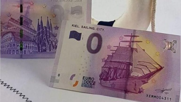 No es una broma: En Kiel, Alemania, existe un proyecto de billetes de Euro con un valor de cero euros. Y el Banco Central Europeo (BCE) lo ha reconocido. Ya no es un mito, y se ha convertido en un preciado artículo de coleccionistas. Actualmente el precio del billete de cero euros es de 2,5 €, pero seguramente los billetes se agotarán en poco tiempo y los coleccionistas llegarán a pagar mucho más. De hecho, la primera impresión llega a 5.000 copias de este billete y su precio inicial es 2,5 €. Este billete se imprime en el papel de euro real. Además, tiene las características de seguridad habituales, tales como marcas de agua, holograma, ventana transparente, tiras de cobre y un número de serie individual. Estas medidas de seguridad hacen que sea prácticamente imposible su falsificación.